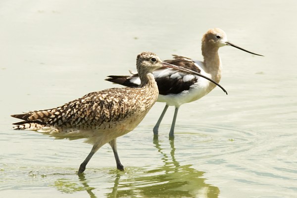 Long-billed Curlew with American Avocet in back