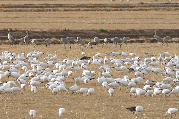 Snow Geese with Sandhill Cranes