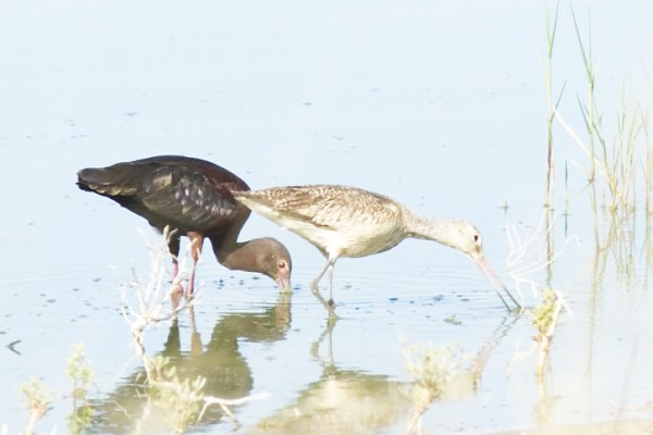 Marbled Godwit and White-faced Ibis